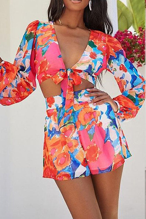 Kathiadress Casual Printed Sling Sleeveless Lace Up Two-piece
